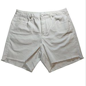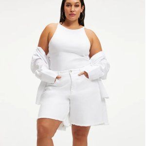 Good American 90s Icon Bermuda Shorts White raw hem denim US22 woman high waist