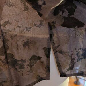 NWOT Gray Floral 100% Silk Button Down Shirt L 12-14