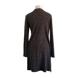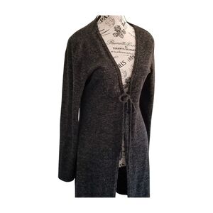 This gray cardigan sweater offers a relaxed, drapey fit with a deep V-neckline and long sleeves. Its open-front design makes it perfect for layering, while the soft texture adds a touch of comfort and style.