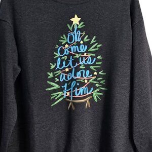 NWOT Gray "Oh Come Let Us Adore Him" Christmas Tree Graphic Sweatshirt - Medium