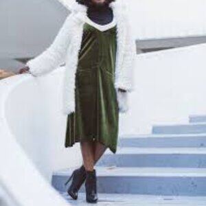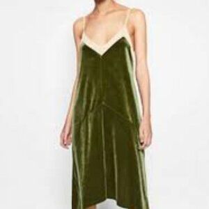 NWOT Green Velvet Slip Midi Dress with mesh, very similar to a Zara model. Assymetric hem.