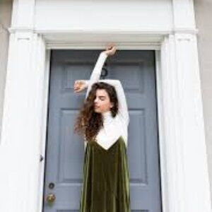 NWOT Green Velvet Midi Dress with Mesh Trim Detail