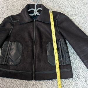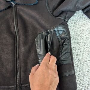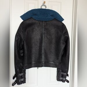 NWOT Guess UNISEX Faux-Leather Black Bomber Jacket With Sherpa Lining
