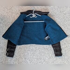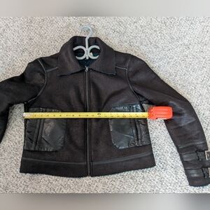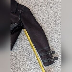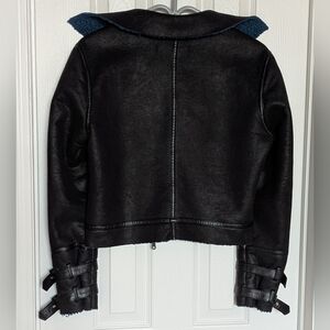 NWOT Guess UNISEX (Size S) Faux-Leather Black Bomber Jacket With Sherpa Lining