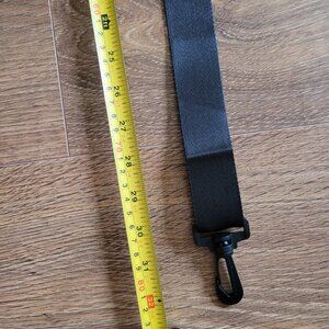 Strap is adjustable while laid out straight it is 32 inches in length and can extend to 56 inches.