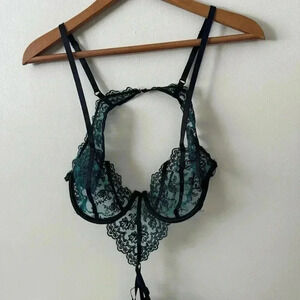 NWOT HAUTY Strappy Embroidered Mesh Thong Teddy in Nightshade S