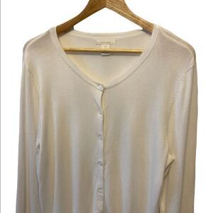 NWOT H&M Basics White Lightweight Tight Knit Button Up Long Sleeve Sweater L
