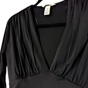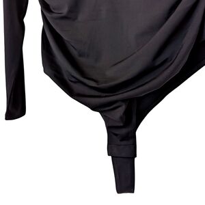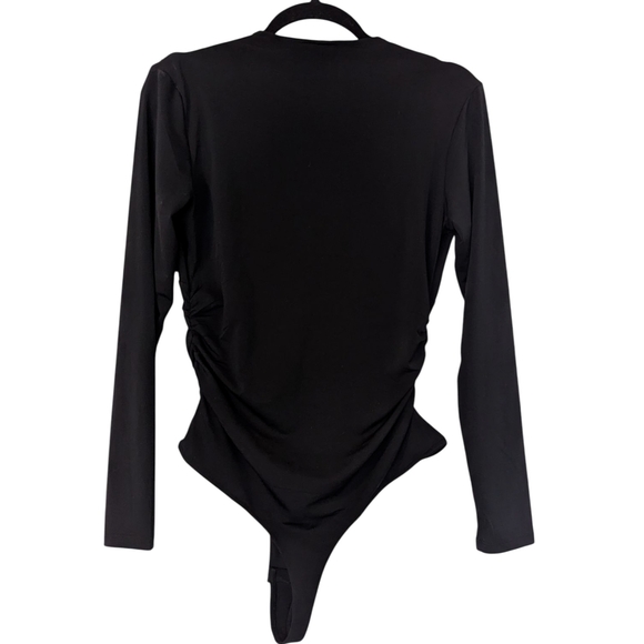 NEW without tags! Chic black bodysuit with long sleeves, super stretchy featuring a deep V-neckline and ruched detailing.