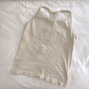 NEVER WORN WITHOUT TAGS! Sleeveless sports top in ribbed jersey. Low-cut neckline, racer back and integral sports bra with good support and elasticized lower edge. No padding included. Designed with minimal seams for added comfort and increased freedom.