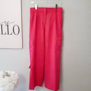 NWOT H&M bright pink wide leg cargo utility pants, US10