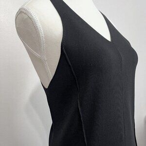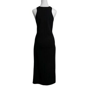NWOT HOUSE OF HARLOW 1960 BLACK VISCOSE STRETCH KNIT SLEEVELESS MAXI BODYCON FRONT SLIT DRESS - XL , this is a sleek, sultry comfy stretch viscose knit sleeveless v-neck front slit maxi bodycon dress from House of Harlow 1960 in a pullover style - unlined - exposed seaming on the front that converge to the center on the belly area for a flattering detail - comfy yet sexy and chic - mature, classic for any fall and winter evening events from holiday's party to a first date, special dinner or funerals. The v-neck is not plunging to keep it conservative and classy.