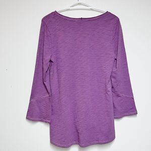 A perfect top for the transition from winter to Spring the Pieced Tunic is an all cotton top with a slub texture. It has lots of stitched seam detail, long sleeves, rolled edges at the round neckline and a flattering swing to the hemline.
