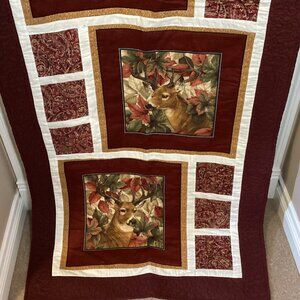 NWOT Handmade Quilted Winter Wall Hanging Home Decor Deer's Rectangle Brown
