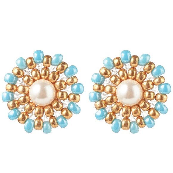 NWOT - Handmade Seed bead & Shell Pearl Round Stud Earrings