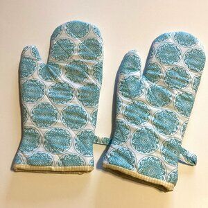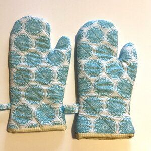 Keywords: Kitchen linens, apron, oven mitts, gloves, matching set, kitchen linens