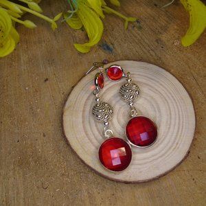 beautiful cushion cut crystal earrings. crystals have been set and have lovely facets. Antique silver bead in center is very ornate and detailed. Handmade by StudioJAndrel - new without retail tags. See photos for details and sizing. Last photo shows the earrings in Black and red as well. These are available in my other listings.