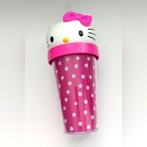 NWOT Hello Kitty Plastic Pink Polka Dot Tumbler/Water Bottle/Glass/Cup