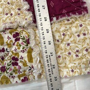 Brand new, never used, handcrafted by me. This handmade baby quilt is made with new material in a very clean smoke free home. It is made with cotton fabric on both front and back with a flannel layer in the center. It has been washed three times to start the ragging process. I do suggested washing and drying with an old towel only a few more times as you will still get small pieces of fabric come off.