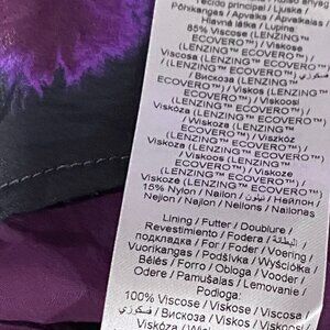 Beautiful NEW without tags InWear dress. Long sleeve v-neck, cinch waist, knee length, and colour block- purple, red, and black. Size 6, and made of viscose.