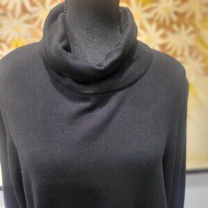 Isaac Mizrahi Live! black turtleneck sweater dress with a lace hem.