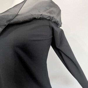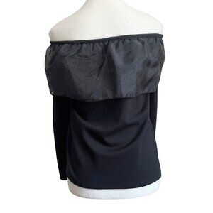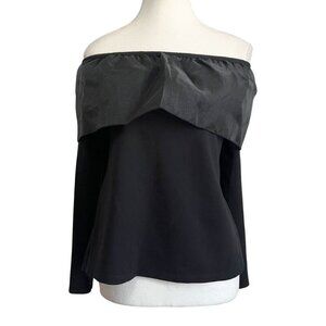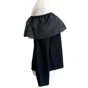 NWOT J CREW BLACK ORGANZA RUFFLE OFF THE SHOULDER LONG TEE TOP - L