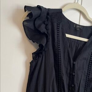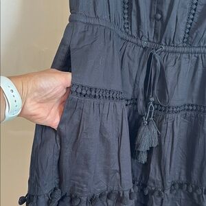 J CREW NWOT maxi dress with ruffle sleeves. Features embroidery, Pom Pom's, fully lined with cotton, pockets, elastic and string tassel at waist, front button closure. Perfect for any occasion. New without tags. Security tag still on it. I loved this dress and never had a chance to wear it.
