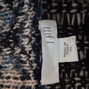 Elevate your cozy-chic style with this beautiful J.Jill wool blend cardigan. Featuring a striking blue and cream tribal/aztec pattern, this sweater is a true statement piece. The blend of wool and acrylic provides warmth without being too heavy, perfect for layering during cooler seasons. The long, duster length cut makes it ideal for pairing with leggings, jeans, or trousers. A unique and timeless addition to your wardrobe!
