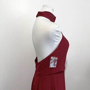 NWOT JENNY YOO COLLECTION BURGUNDY HALTER CHIFFON FRONT TIE FORMAL DRESS - 4