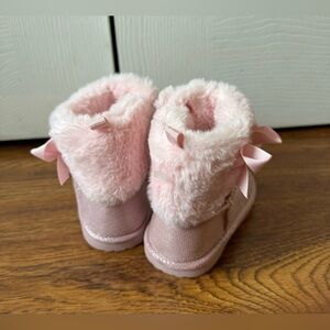 NWOT JOE FRESH pink sparkle vegan booties with bows (size 5)