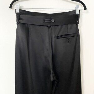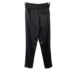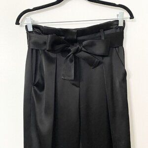 NWOT JUDITH & CHARLES BLACK SATIN BELTED TAPERED TROUSERS PANT - 0