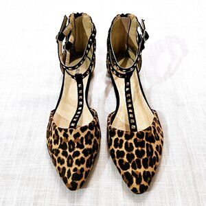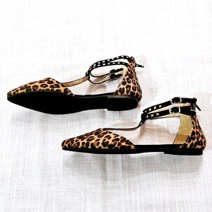 NWOT JUST FAB Pointed Toe With Studded Strap Leopard Print Flats Size 7.5
