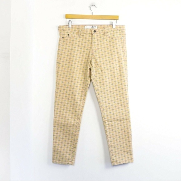 NWOT Joe Fresh ankle slim coupe printed jeans Patel yellow beige bohemian light