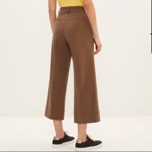 Gorgeous brown high-waist, wide-leg pants. Button front closure with zipper. Beltloop at waistband. Back welt pockets. Using biosynthetic Archroma’s EarthColors® dyes made from natural, non-edible by-products left over by the agricultural and herbal industry.