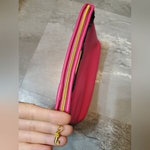 NWOT Juicy Couture small zip makeup/cosmetic bag. Hot pink, black. Sequins on the black part. See pictures for measurements. No stain, no rip. Non smoking house.