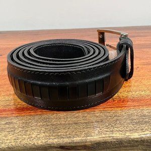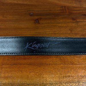 NWOT KINGSPORT Black Genuine Leather Brushed Silver Bucket Belt (125/50)