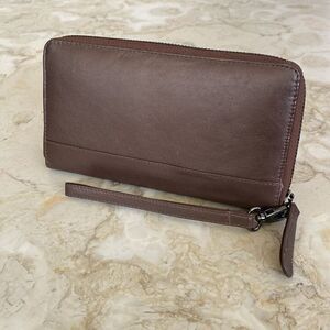 Brand new without tags gorgeous large Kenneth Cole leather wallet. Long zip around style with detachable wristlet strap. Interior has tons of carrying capacity including: