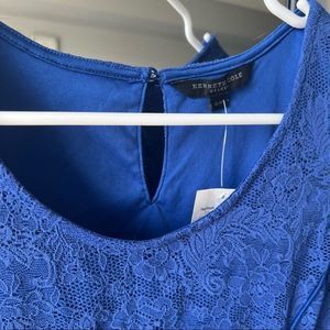 NWOT Kenneth Cole Reaction blue Lace Sleeveless Shirt, Size Small