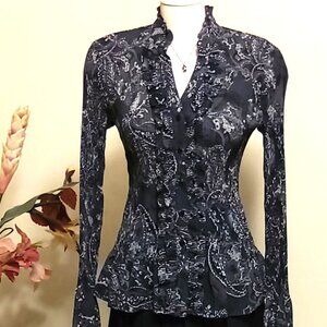 NWOT Kensie Long Sleeve Shirt Ruffle Pleated Floral Print Blouse Top Size M 8