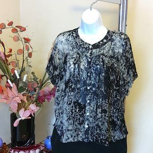 NWOT Kensie Women’s Short Sleeve Gray Black Printed Blouse Top Size M could fit for Size 8 or 10