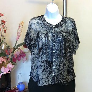 NWOT Kensie Women’s Short Sleeve Gray Black Printed Blouse Top Size M 8 10