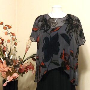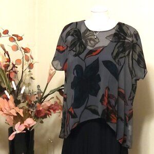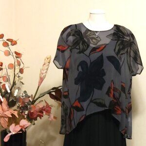 NWOT Kensie Women’s Summer Loose Fit Cap Sleeve Gray Floral Print Crop Pullover Short Top Casual Size S could fit for Size 6 or 8