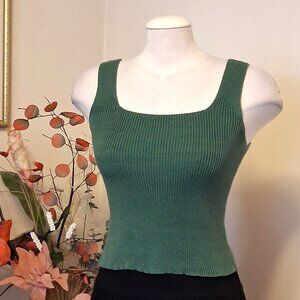 NWOT Kroshetta Stretchy Cardigan Knit Green Tank Top Camisoles Sleeveless Sweater Spring Fall Winter Size M fit for 8