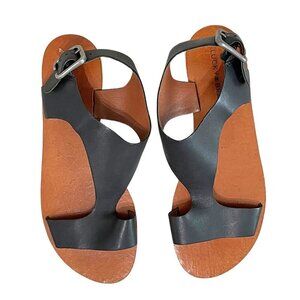 NWOT LUCKY BRAND DEVYN BLACK LEATHER T-STRAP SANDALS - 10