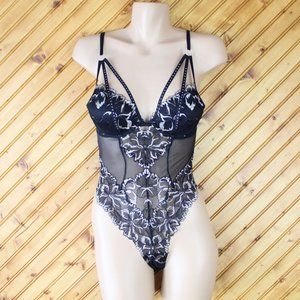 NWOT La Senza Teddy Gold Silver Floral Black Padded Underwire XS Sheer T68