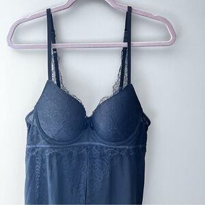 NWOT La Vie En Rose Push Up Lace Mesh Babydoll Slip Women’s Black Size Large
