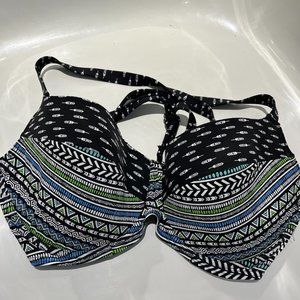 This full coverage bikini top is fully lined with some subtle padding. It is D Cup - Large with underwire for support.