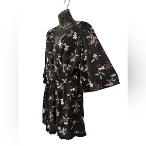 NWOT, La Vie en Rose Aqua, Romper Floral Pattern, Small, Black, Pink 🌸