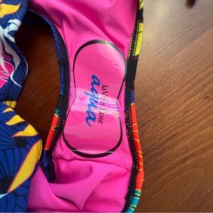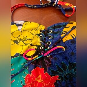 Beautiful vibrant floral 🎀 La Vie en Rose Aquarose one piece swimsuit with lace up bodice. Removable halter strap with full coverage bottom.