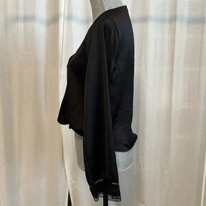 NWOT GYPSIES & MOONDUST Dainty feminine blouse with wrap style and lace details around arm and front. Satin material, elastic waist at front and longer material at the back.