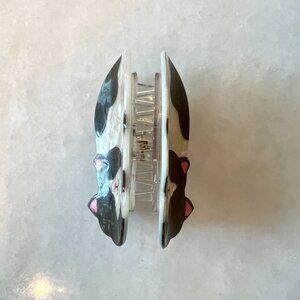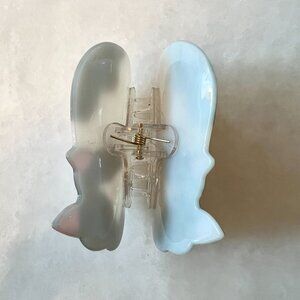 A large hair claw clip in the shape of an brown and white spotted cat! Pearlescent. Adorable!